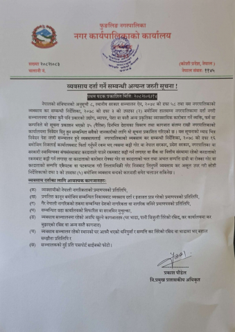 Home » व्यवसाय दर्ता गर्ने सम्बन्धी सूचना ।