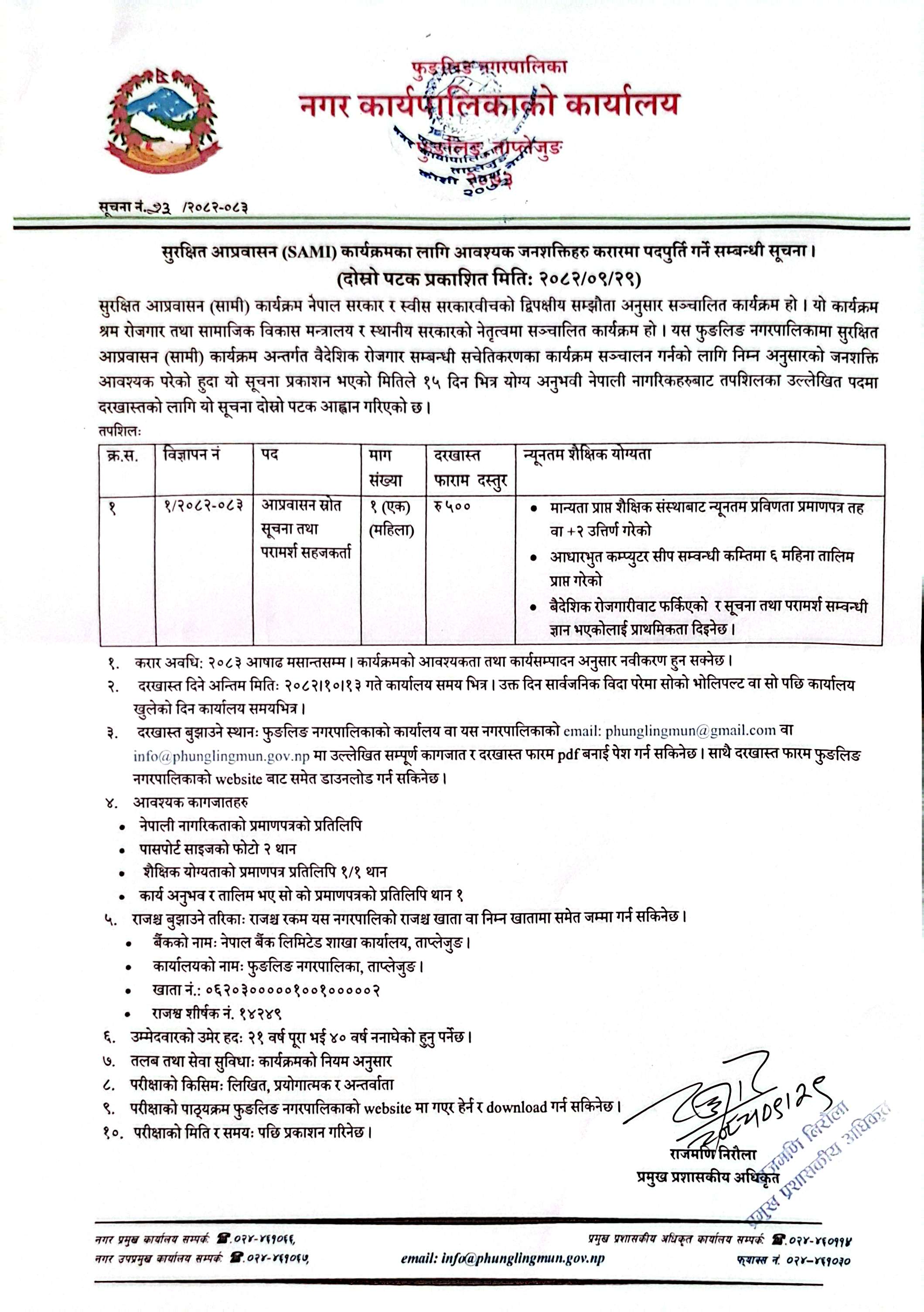 Home » सुरक्षित आप्रवासन (SAMI) कार्यक्रमका लागि आवश्यक जनशक्ति करारमा पदपूर्ति गर्ने सम्बन्धि सूचना!!!