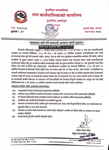 व्यवसाय दर्ता गर्ने सम्बन्धी अत्यन्त जरुरी सूचना!!!!!